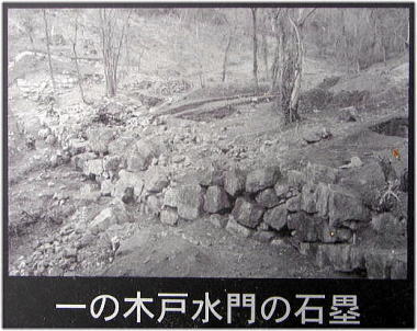 ![]() 一の木戸跡 ![]() 一の木戸跡の石塁 ![]() 石塁前面の排水口 |