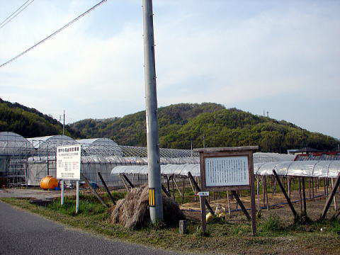 | 草ケ部地区の大廻山、小廻山に遺存する古代山城跡で、標高198.8mの小廻山と尾根続きの大廻山からなる。主峰と北西および西側の谷を取り込んだ単郭式の縄張になる。城郭の外郭施設は基本的には土塁築城になり、これが山頂から谷部にかけてとりかこみ、三ヶ所の谷筋には水門状石塁を構えている。 構造的な特徴から神籠石系山城の部類に入り、瀬戸内型に細分される。外周総延長約3.5㎞防禦正面を旧赤坂郡南部に向けた内陸志向を示している。城郭遺構は三ヶ所の石塁と随所に残る外周土塁地形だけである。この城跡の築城主体者と年代については諸説はあるが、確定をみるに至っていない。 |