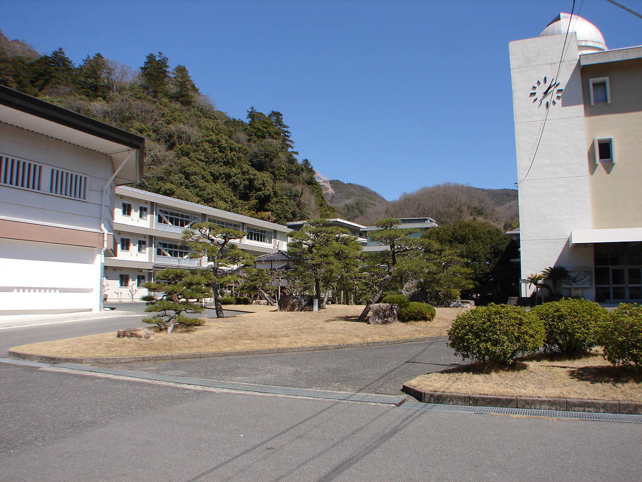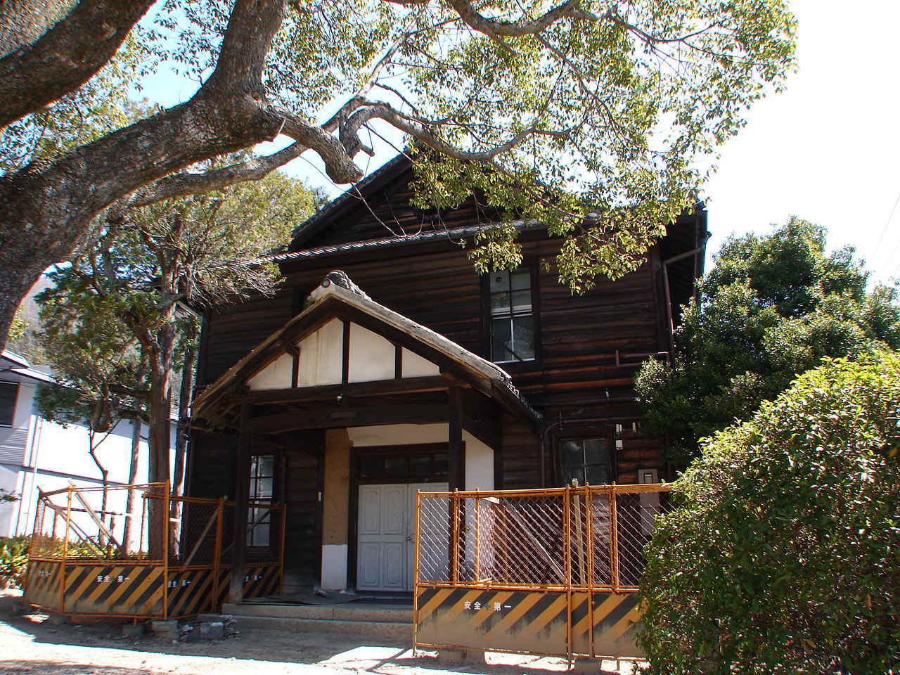 ■現存する校舎〜その後寮に転用されたこの建物は、正面玄関は日本風になっているが、2階の一部をベランダにした和洋折衷の趣きをもっている。