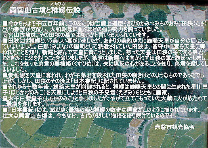 ▲空からの両宮山古墳(観光案内所展示写真に文字を付け足して転載)
