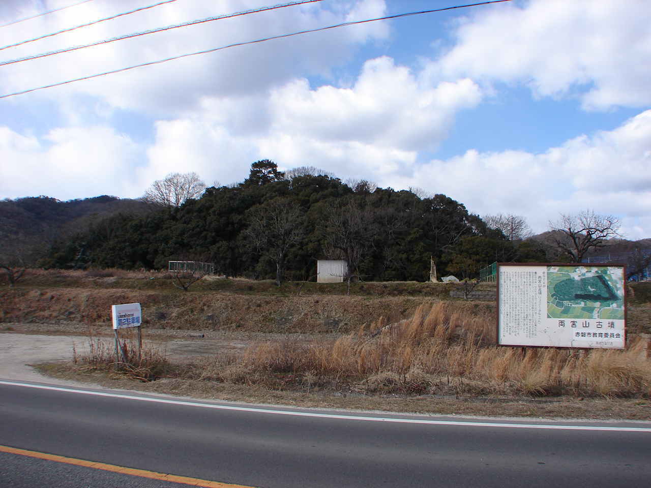 ![]() 両宮山古墳後円部の北側に位置する帆立貝形の前方後円墳。墳丘全長55mの規模をはかる。この古墳も、両宮山古墳と同様に二重の周濠をめぐらすことが発掘調査により判明している。主墳である両宮山古墳と極めて計画的に配置された古墳で、主墳に葬られた人物と親密な関係が想定される。 |