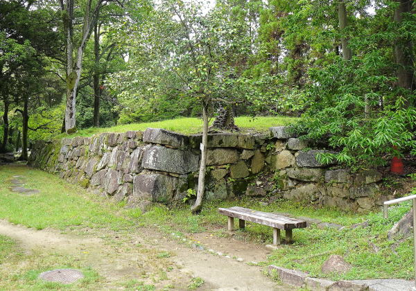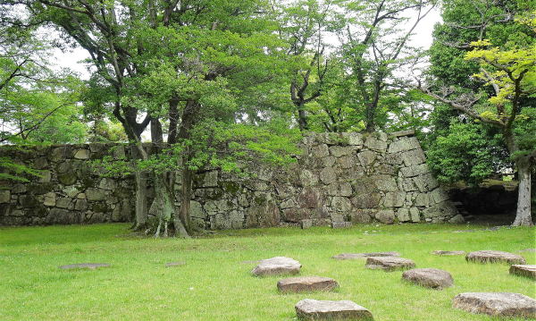 ![]() 東小天守跡 右側部分が東小天守台、左側は天守閣に連結している。手前は、旧天守閣の礎石です。 |