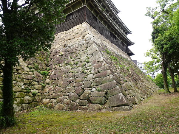 ![]() 東小天守跡石垣と天守閣 手前の石垣は、東小天守台です。 |