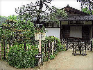 ![]() (左)清風館。庭園のほぼ中央にあり、数寄屋造りで、屋根はこけら葺き。 (中)大小10余の島のひとつ (右)悠々亭 |