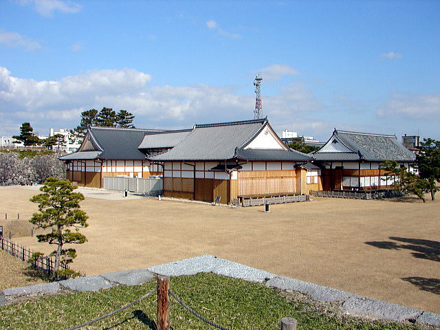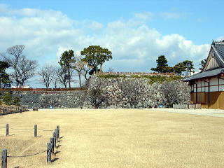 左より、本丸御殿の御三家座、御小書院、御座間。左端石垣は天守台![]() |