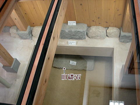 本丸御殿の旧礎石![]() 御殿内から見ることのできる旧礎石の一部。 旧礎石はそのままの状態で保存され、復元された御殿はその上に建造。 |