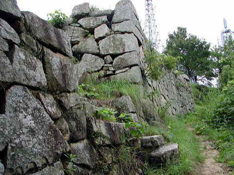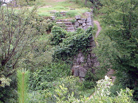 新市工業団地の裏手からの相方城跡。石垣がはっきりと確認できる