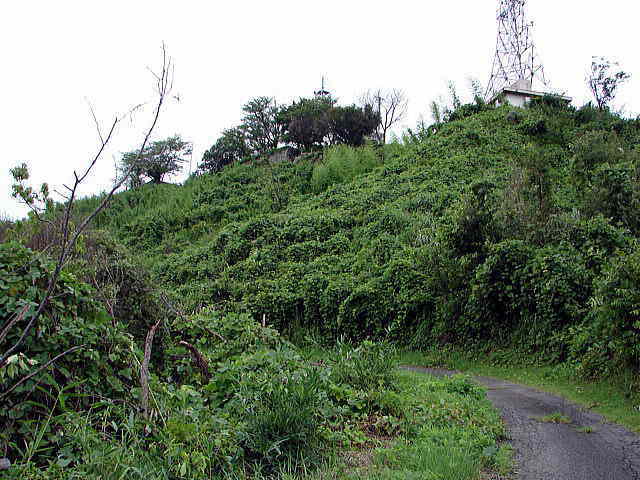 中腹あたりの登山道と、相方城跡の東側郭群