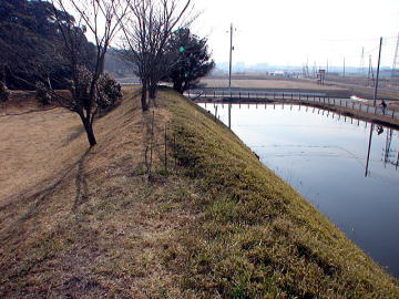 ▲▼出丸跡(南側)の土塁と水堀