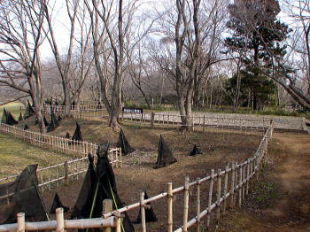 後方の建物は、椎木曲輪跡(侍屋敷跡)に建つ国立歴史民族博物館。