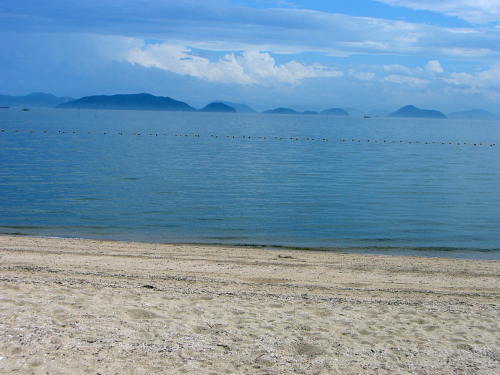 ▲沙美海水浴場(西浜)と瀬戸内の島々