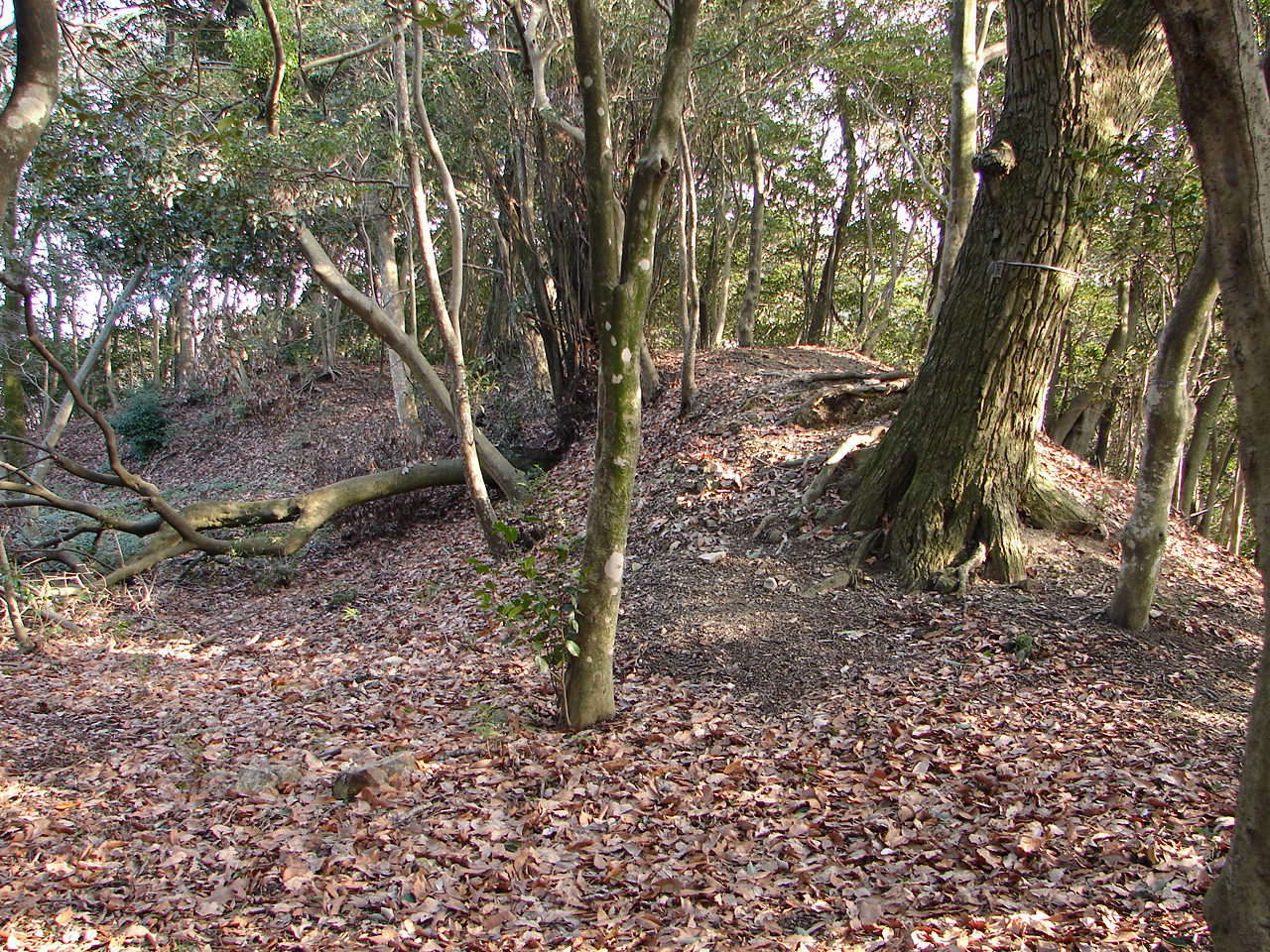 後に見える土塁のような、切岸状態の上部は三の丸跡