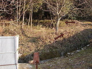 ■トタン製の扉を開けることもできますが、右側に簡単な橋が架かっているのでこれを渡り矢印の方向に進む
