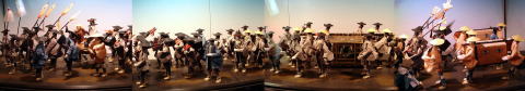 徳川政権は、初代将軍家康から、十五代将軍慶喜(よしのぶ)まで264年間続いた。その長期政権を可能にしたのは、豊な経済力と諸大名の力を巧みにコントロールする強力な幕藩体制であった。徹底的な大名統制を行い、まず、一国一城令で、本城以外の城の取り壊しを命じた。さらに、武士の基本法である武家諸法度を制定して、大名同士の同盟や無許可での城の修理を禁止し、軍事力を奪った。さらに参勤交代の制度を導入。幕府は原則として、大名の生活の場を江戸1年、国元1年とし、外様大名の場合は4月を交代期として、2年に1回の割合で、江戸と国元を往復させた。この行列は、藩の石高に応じて随行する人数なども決められており、それにかかる費用はかなりの額にのぼった。華やかな大名行列の陰には、幕府による諸大名の経済力削減の目的が込められていた。幕府は大名から軍事力と経済力を奪うことで、強力な支配体制を築いた。