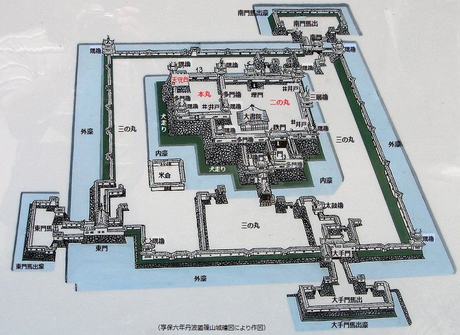 【ありし日の篠山城】![]() (現地説明板に追記し掲載) |
