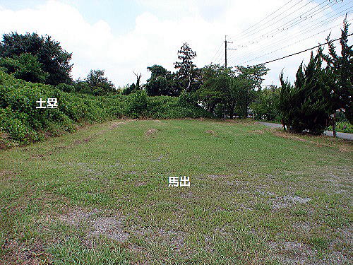 ![]() 三の丸より、外堀の土橋を渡った所の南馬出中央部、Ⓑ地点より土塁を望む。 |