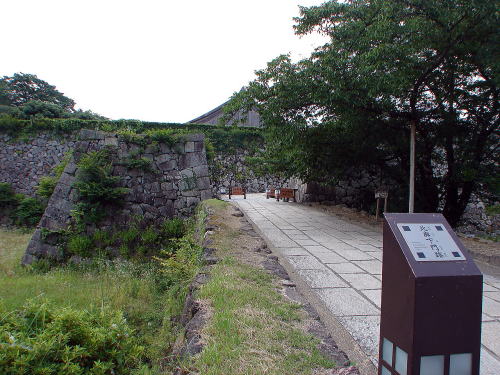 ![]() 二の丸埋(うずみ)門跡(二の丸側) 二の丸南側に築かれ、門の上には多門櫓があった。埋門は非常時には埋めて遮断することになる門。 |