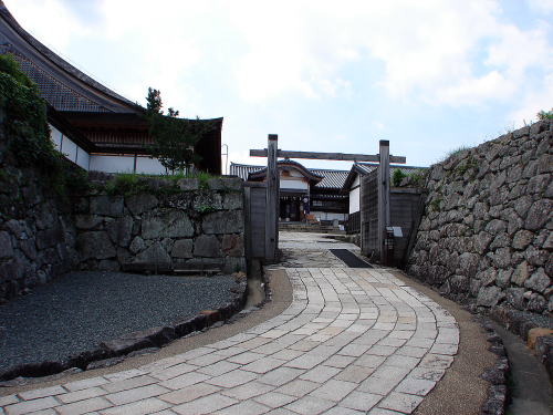 ![]() 鉄(くろがね)門跡 二の丸北側に枡形を二重に設け、中門と鉄門がある。現在は門を入ると正面に復元された大書院がある。 |