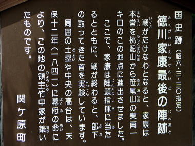 ▼徳川家康最後陣地(東軍の総大将)