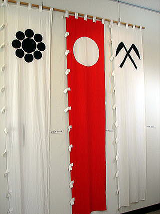 左より、細川忠興・毛利秀元・小早川秀秋の大のぼり。