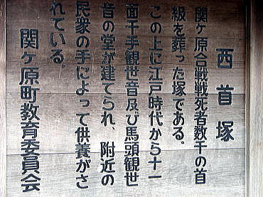 関ヶ原合戦の後、床几場で家康が西軍の武将の首実験を行い、その後、遺体を東西二か所に埋葬した。