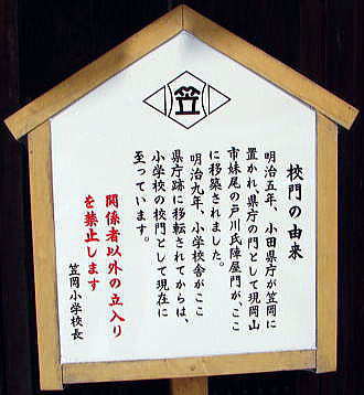笠岡小学校のあるあたりは、かつては堀の内と呼ばれ小田県庁の跡であり、もと三方を幅五、七メートルの壕で囲ってあった。以前は笠岡代官所跡であり字は小丸である。小田県庁は、明治四年(一八七一)十一月十五日に廃藩置県の布書によって設置された深津県が、明治五年(一八七二)六月五日には小田県と改称され、その県庁が笠岡に置かれた。当時小田県(備中・備後のうち東部五郡)のほか岡山県(備前)、北条県(美作)の三県が置かれていたが、うちでも小田県は約五十三万石の最も大きい県であった。明治八年(一八七五)には、小田県は岡山県に合併された。