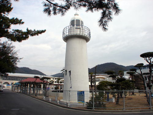 ![]() 渋川御幸灯台(玉野海洋博物館敷地内に建つ) この灯台は昭和28年10月天皇・皇后両陛下が当海洋博物館へのお成りを記念して建設した実物と同じ灯台 |