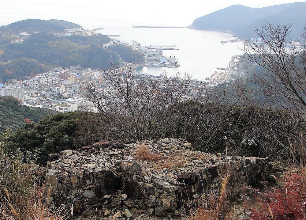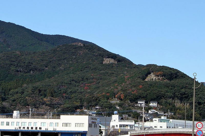 ![]() 厳原港から望む清水山城 尾根に沿って、山頂に一の丸、中腹に二の丸、東の段丘に三の丸が配置。 地域別訪問城に戻る |