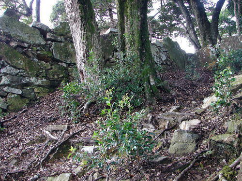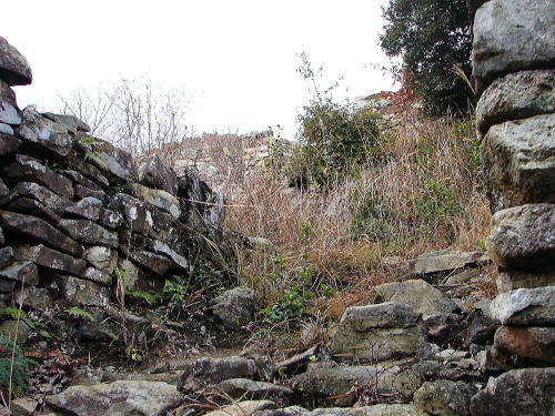 ![]() 「三の丸」から「二の丸」に至る途中の石垣 |