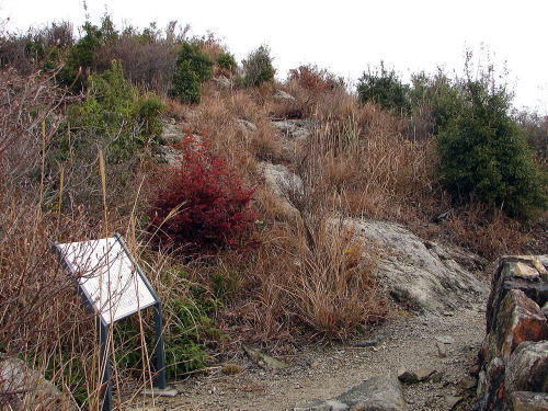 ![]() 一の丸跡 石垣際のみが平坦地になっている。 |