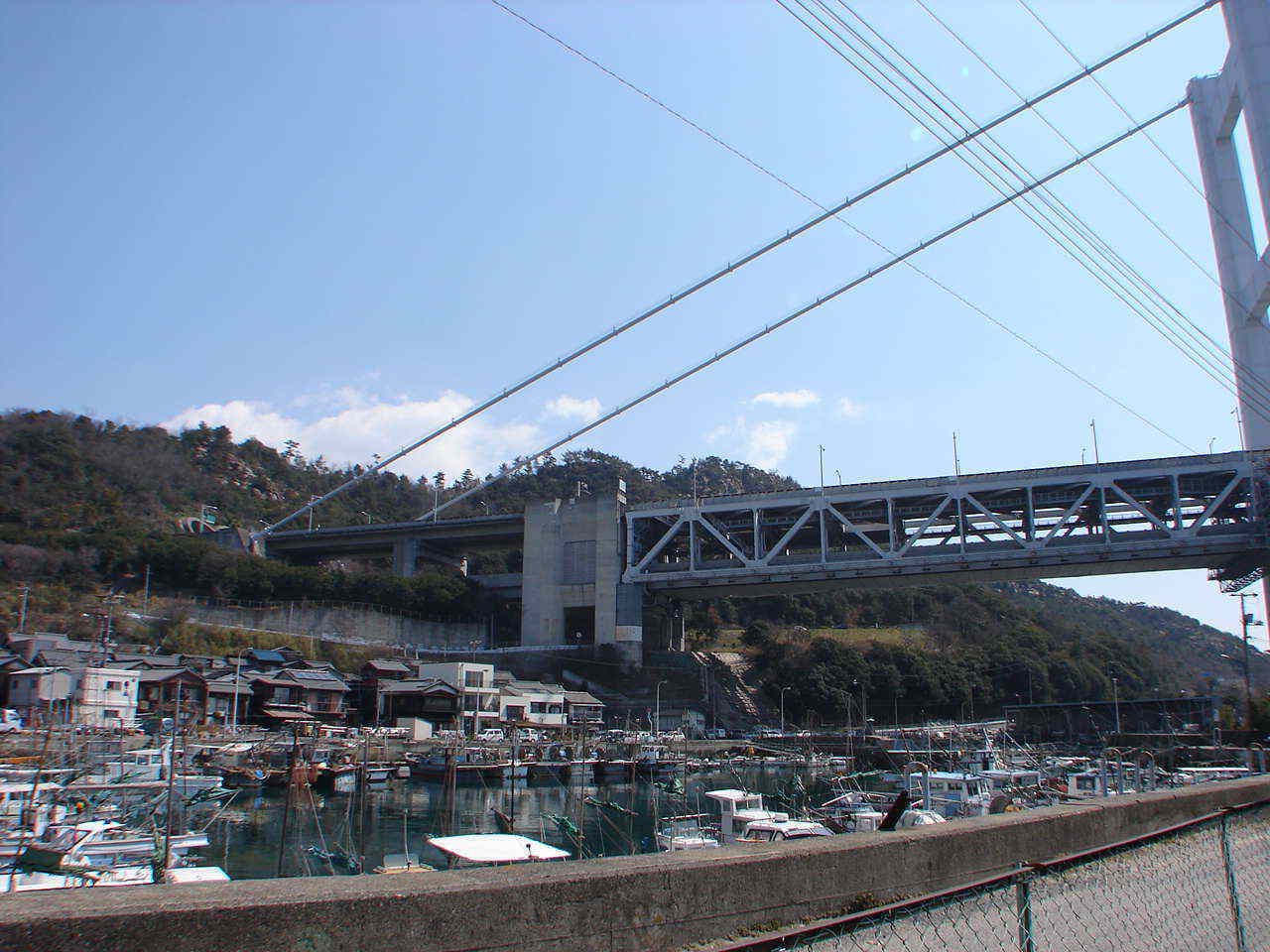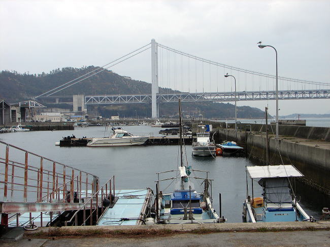 ![]() 田之浦港脇の下津井瀬戸大橋 下津井瀬戸大橋の後方は、鷲羽山。 |
