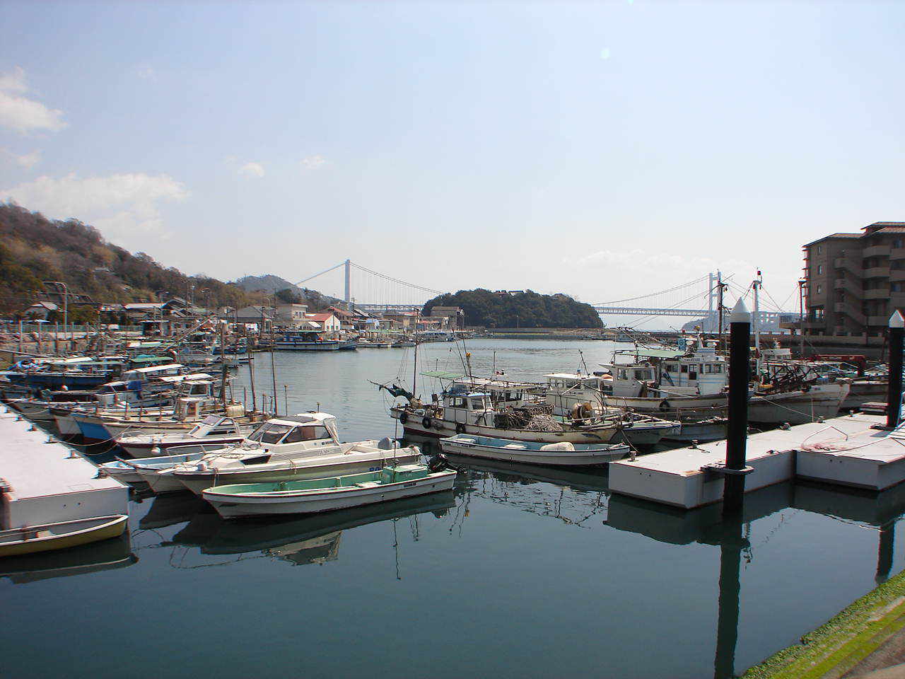 ![]() 下津井港 下津井港と下津井瀬戸大橋(西からの眺め)。 |