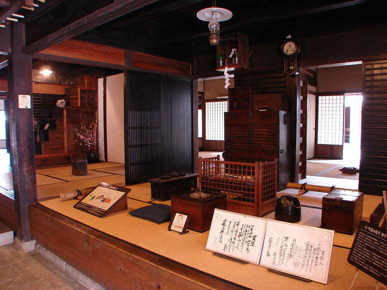 ![]() 「母屋一階」 店の間、座敷、茶の間、台所などそれぞれに当時のたたずまいが再現されている。 |