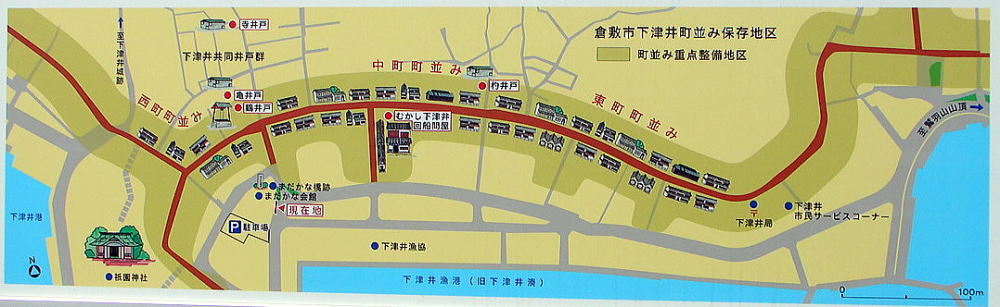 ■下津井海岸周辺図 ![]() 下津井は児島半島の南西端にあり、東から西へ並んだ港町で、大畠・田之浦・吹上・下津井の4集落を「下津井四ヶ浦」長浜と総称してきた。大畠と田之浦の間には鷲羽山が聳える。 |
