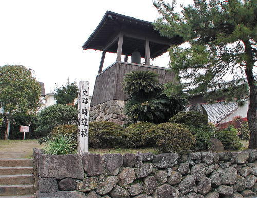 ![]() 時鐘楼 島原藩主・松平忠房公は、鐘楼を建てて時間ごとに�撞き鳴らし時刻を知らせた。島原の人たちに親しまれていたが、太平洋戦争下の昭和19年に金属として供出。昭和55年、志ある人たちによって復原。 |
