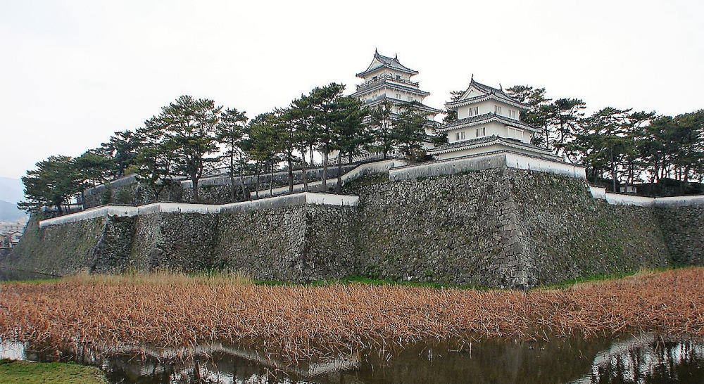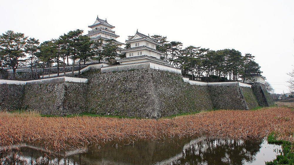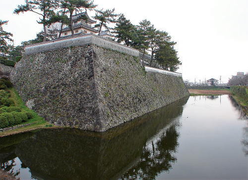 ![]() 水堀 本丸南西隅の石垣と、櫓は西三重櫓。 |