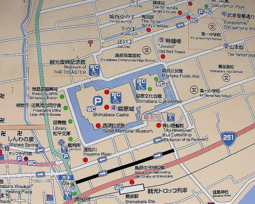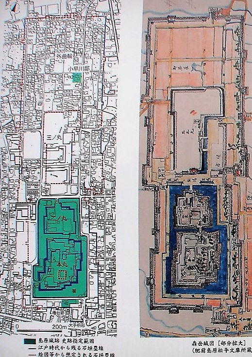 【現在の島原城地図】![]() (地図左は北、右は南。説明板より) |