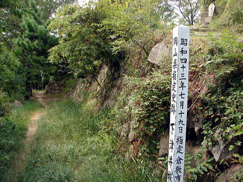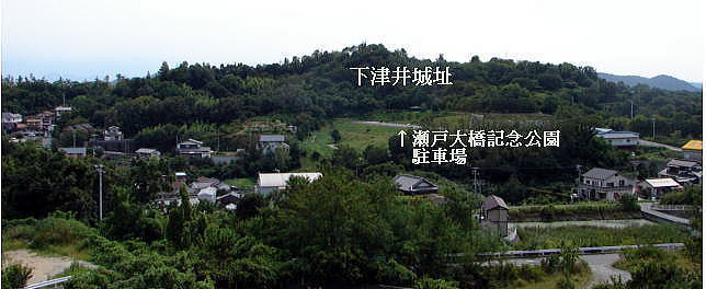▼下津井城は、連郭式平山城(標高88m.)で丘陵に沿って東西に縄張されている。本丸は最高所にあり北側に一段高い天守台がある。本丸の西に二の丸、本丸から東に下ると三の丸、中出丸、東出丸へと続く。城の建物は残っていないが、石垣などは良好に保存されている。近世城郭の遺構として貴重な城郭である。なお、城門のひとつが倉敷市藤戸町天城にある正福寺に移築されている。