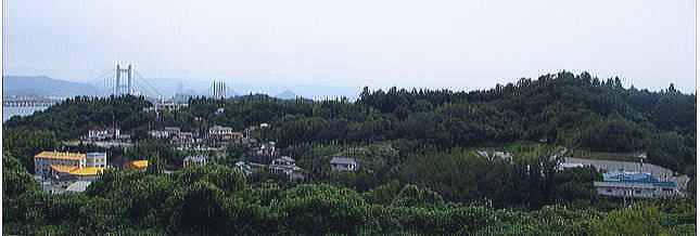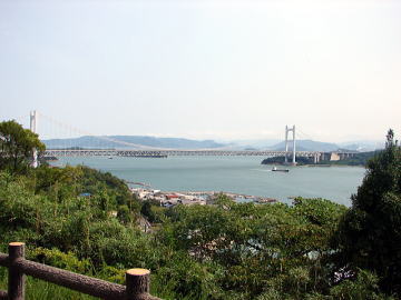 後方(南側)には瀬戸内海、瀬戸大橋を望む。