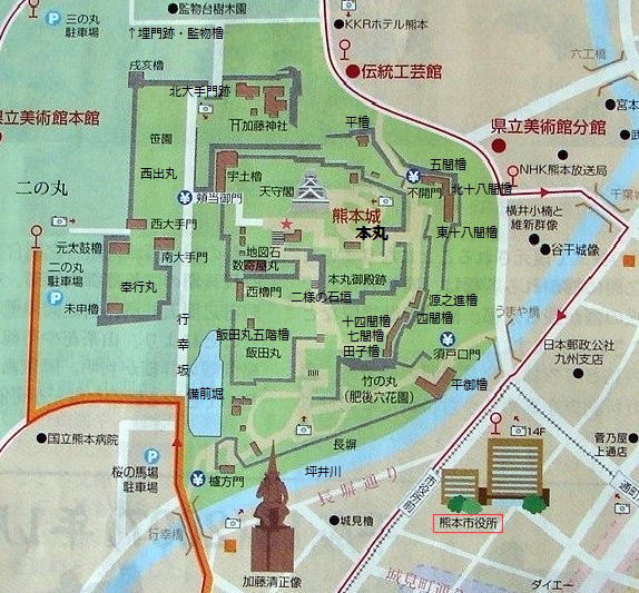 {熊本城案内図(現地リーフレットに追記転載)}