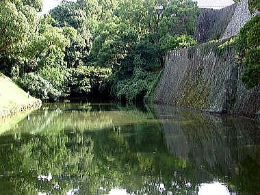 [写真・下]備前堀。熊本城の東から南にかけては坪井川を内堀に見立てたため、水堀はここ一ヶ所だけであった。写真右側に、飯田丸五階櫓が建つ。