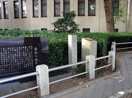 ![]() ▲駿府町奉行所址 駿府町奉行は、老中直属の組織で、町政全般の掌握から訴えなどの裁き、城下の警備や府中宿の管理などまで、駿府の町民生活に直接関わる広範な業務を担っていた。寛永9年(1632)に大手組町奉行として駿府城大手御門前のこの地に設置された。 |