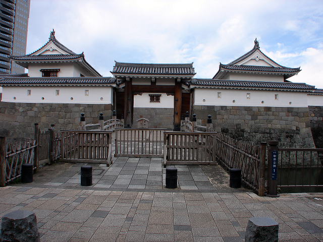 ![]() ▲駿府城大手御門跡 駿府城内へ入る正面出入口。三ノ丸堀を土橋で渡って、右手へ直角に曲がり渡櫓門から城内へ入る構造になっていた。 |