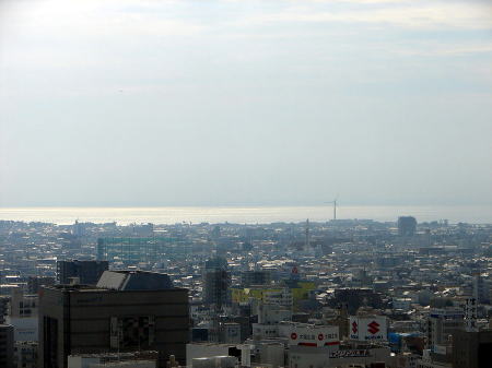 静岡県庁別館(公安委員会・警察本部)の21階は展望ロビーとして開放されており、地上93mから眼下に駿府城跡を望める。