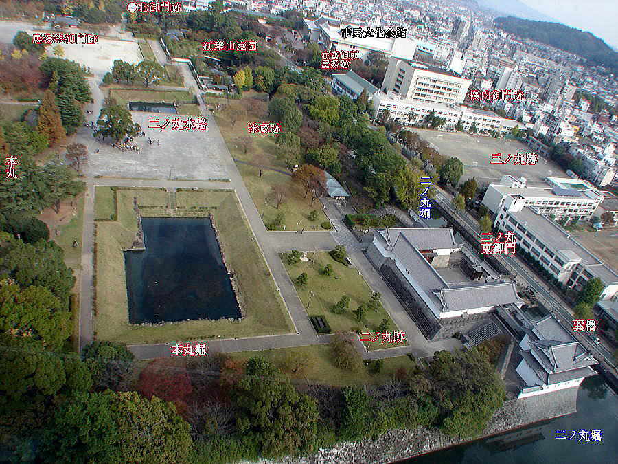 駿府城南東隅に位置する二ノ丸東御門・巽櫓 |