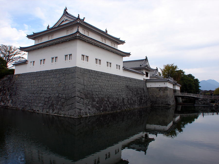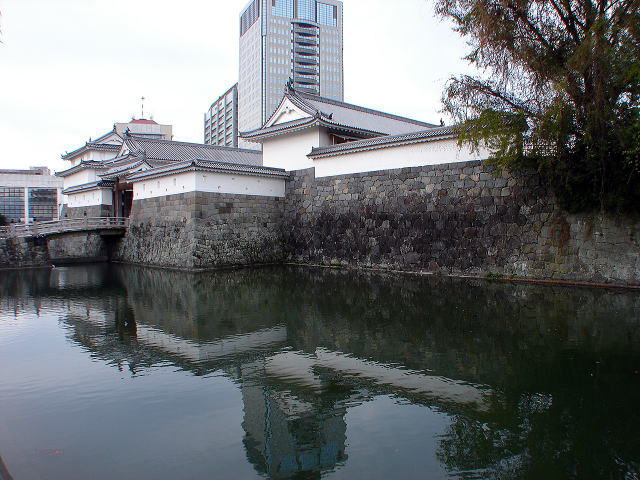 | 遺構 | ▼ニノ丸堀・三ノ丸堀とその石垣が現存![]() 二ノ丸堀と石垣、櫓は復元された巽櫓 |