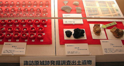 「出土遺物」 ![]() (諏訪原城ビジターセンター展示物) 左より、鉄砲玉、炭化米、土壁片。 |