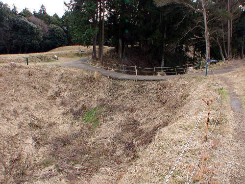 9二の曲輪北馬出の堀![]() 二の曲輪北馬出は最北端に位置し、南側二の曲輪中馬出と土橋で接続する「重ね馬出」で、北側の防備を固めるために付設された曲輪になる。 |