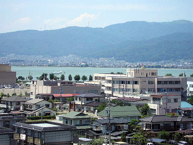 高島城天守より望む諏訪湖 ![]() 現在、湖岸と城は1q離れているが、かつては諏訪湖の波が 城の石垣に迫り対岸から見れば、まさに湖面に浮かぶ城であった。 |