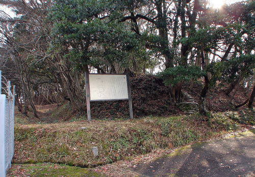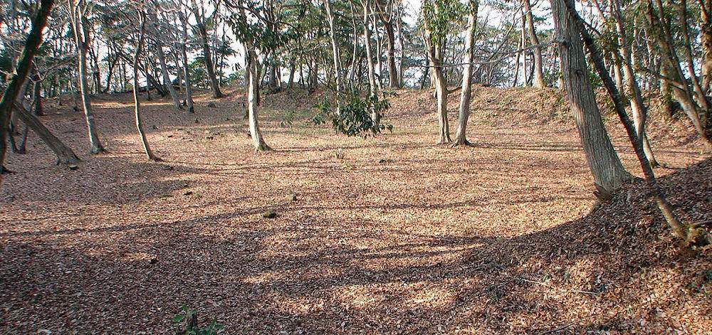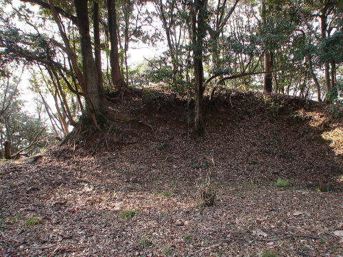 ![]() 大手虎口側の曲輪跡 左側の土盛り部分は土塁で、土塁下は空堀となり、その右側が曲輪跡。 |